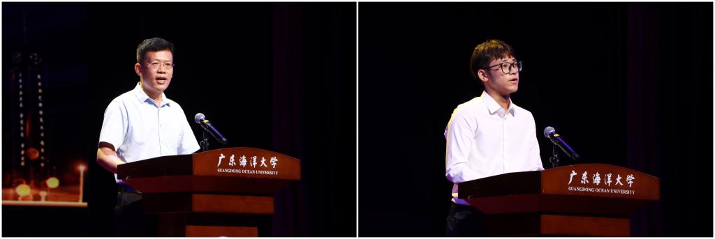 新入职教师代表甘尚权老师、学生代表刘奕朋同学发言