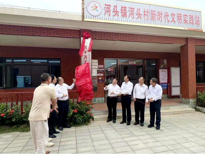 在与会校地领导共同见证下,我校文学与新闻传播学院、滨海农业学院、经济学院、食品科技学院、法政学院党组织分别与割山村、山域村、河头村、新市村、虎溪村党组织签订《“一学院一乡村”党建共建合作协议》。在河头镇河头村新时代文明实践站,与会校地领导共同为“百千万工程”服务站揭牌并参观实践站。