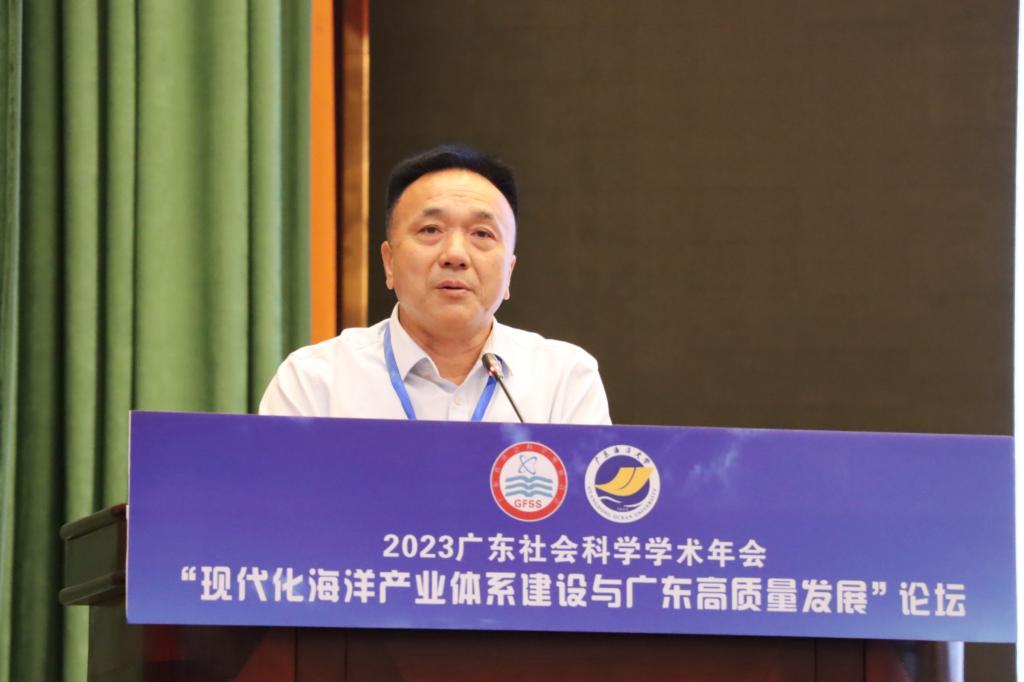 广东省社会科学界联合会二级巡视员何方俊向大会的召开表示热烈祝贺。他希望广大专家学者发挥自身学科专业优势和独特的区位优势,在海洋经济、海洋资源开发、海洋环境保护等领域多出研究成果,为促进广东海洋经济高质量发展,推动广东在中国式现代化建设中走在前列作出更大贡献。