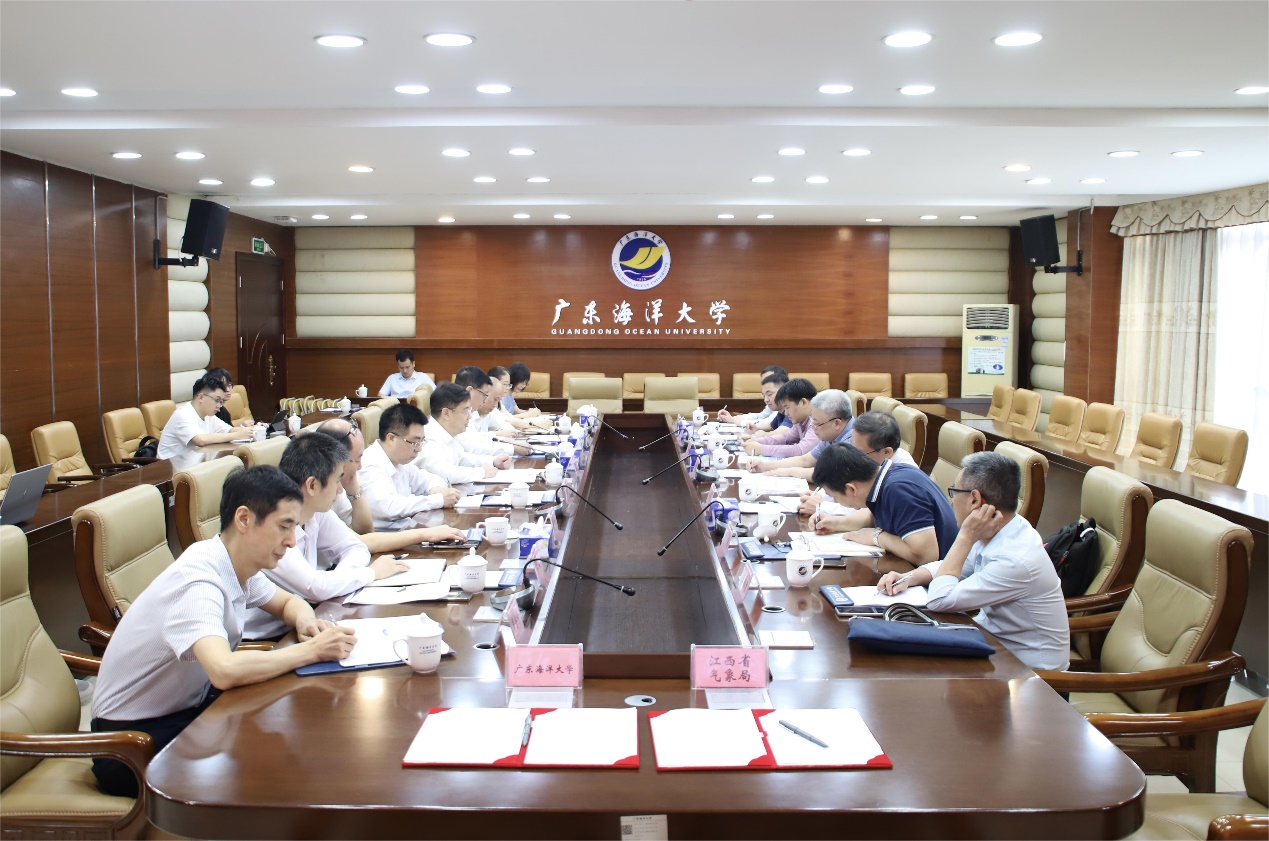 杨洲代表我校师生对江西省气象局各位领导的到来表示热烈欢迎,对气象部门长期以来对我校发展的大力支持表示衷心感谢。他从“有历史、有规模、有特色、有潜力”四个方面简要介绍了我校的办学历史、办学规模、学科特色与科教成果,以及学校校区地处湛江、深圳和阳江的区位优势。他表示,随着双方全面合作协议的签署,我校大气科学将迎来更大的发展空间,相信在学科建设、人才培养、科学研究和成果转化等方面将会结出丰硕成果。