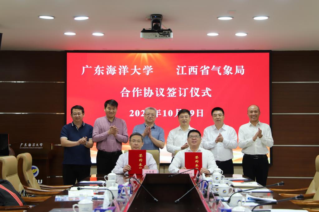 10月19日上午,我校与江西省气象局全面合作协议签字仪式在湖光校区行政楼五楼会议室举行,江西省气象局党组书记、局长傅敏宁、我校党委书记杨洲出席仪式并讲话。江西省气象局二级巡视员何财福、我校副校长谭北平代表合作双方在协议上签字,江西省气象局人事处、科技与预报处、办公室、高质量发展办、气象科学研究所,我校党委办、人事处、科技处、创新科技研究院及海洋与气象学院领导、教师代表等共同见证了签字仪式。