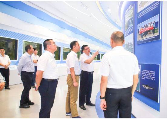 郑海涛一行参观了我校水生生物博物馆海洋牧场展厅,深入了解我校现代化海洋牧场全产业链创新的科研成果。