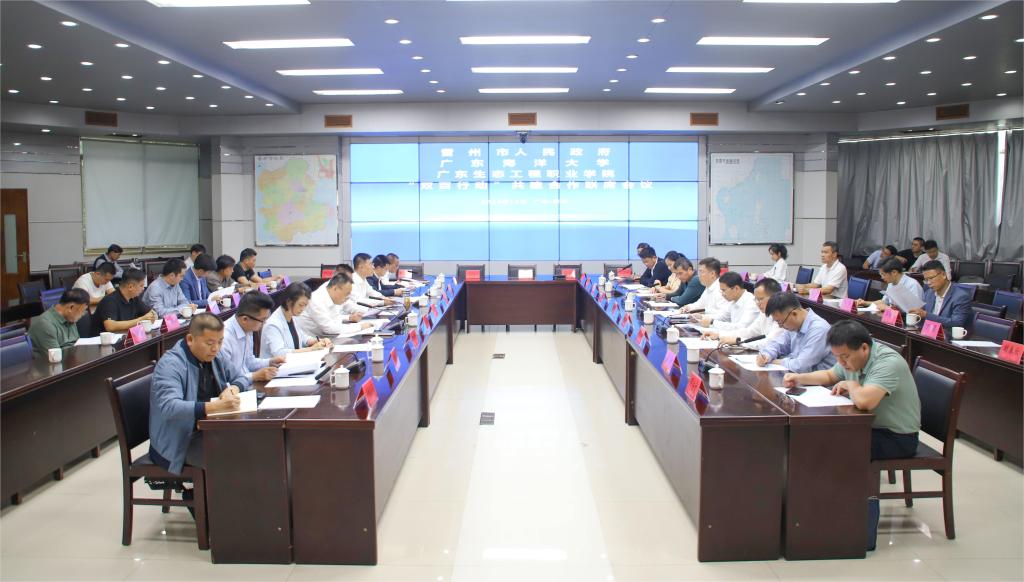 我校组织部、科技部等职能部门及水产学院、滨海农业学院、继续教育学院等相关学院负责人,广东生态工程职业学院领导,雷州市、徐闻县有关领导,合作企业负责人等参加活动。