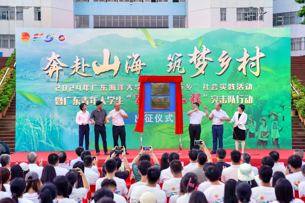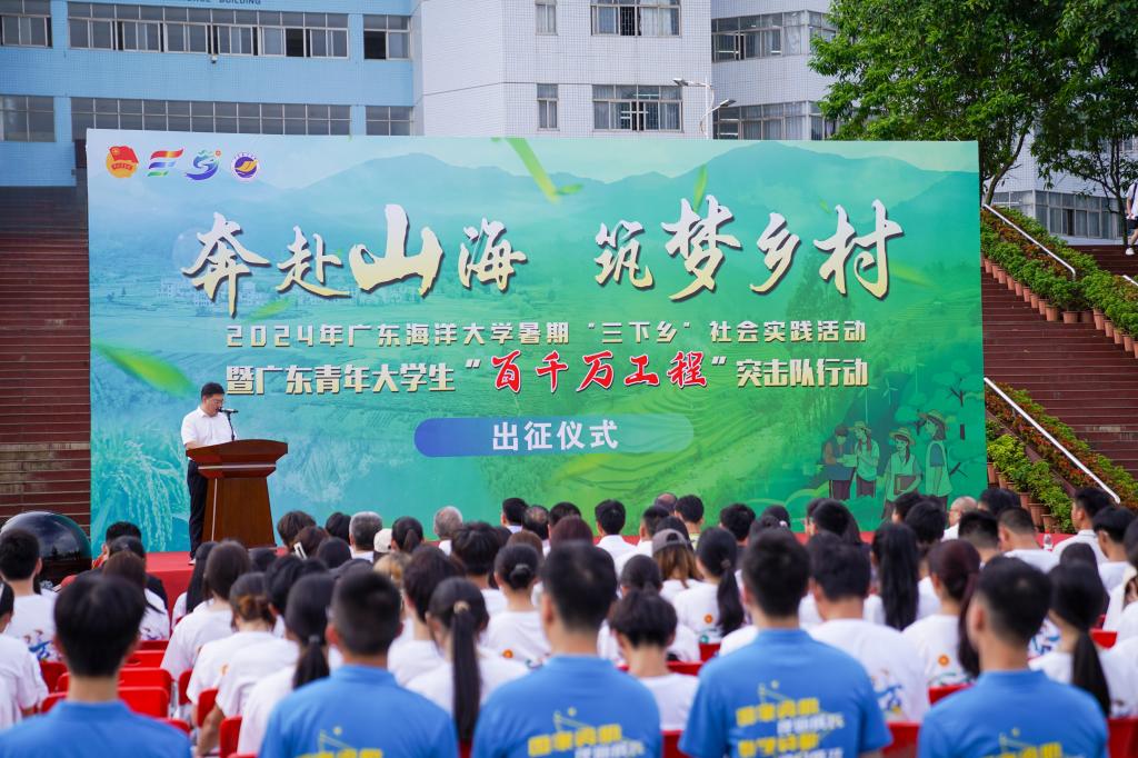 6月26日下午,“奔赴山海,筑梦乡村”2024年广东海洋大学暑期“三下乡”社会实践活动暨广东青年大学生“百千万工程”突击队行动出征仪式及“青春运动日记”活动在湖光校区海洋广场举行。学校党委书记杨洲,党委常委、副校长邓逢光,团湛江市委书记谭凌,团雷州市委书记林琰佳,团徐闻县委书记彭幕,学校党委学生工作部部长郑一鸣,各学院分管学生工作领导、团委书记,社会实践团队代表,青马鸿鹄学员及学生代表共1000余人参加活动。活动由校团委书记袁路主持。