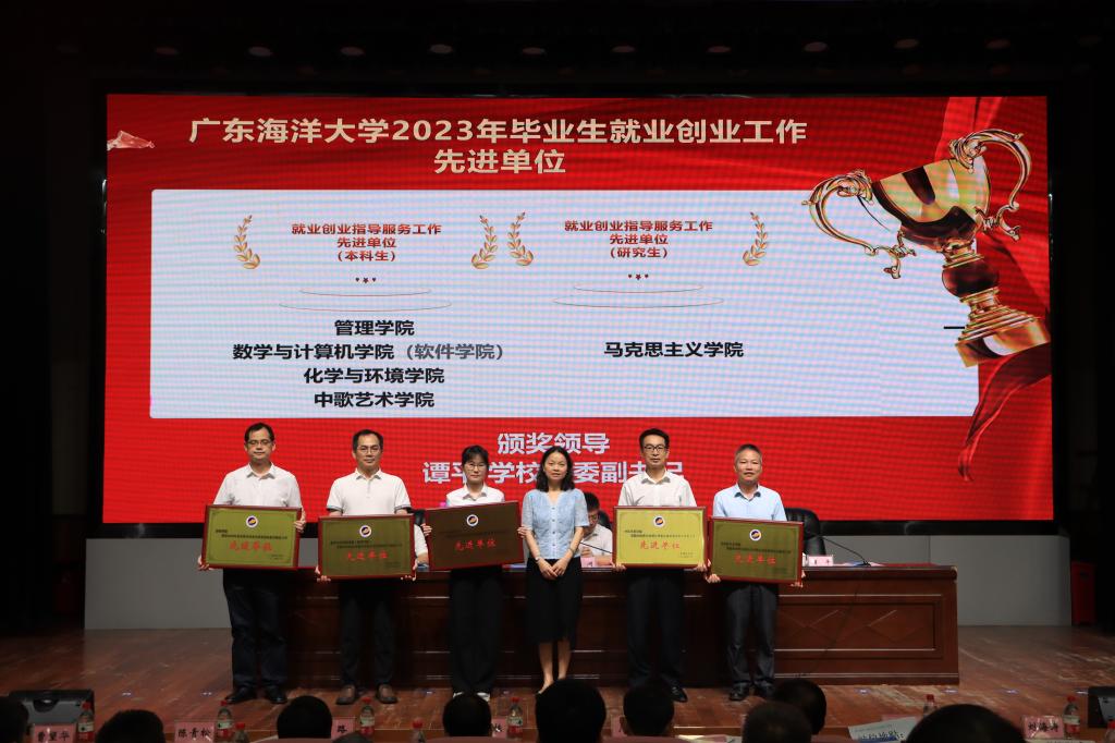 会上,谭平宣读了《关于表彰2023年毕业生就业创业工作先进单位和先进个人的决定》。与会校领导为先进单位和先进个人颁奖。船舶与海运学院等6个学院分别结合学院就业创业工作实际作了发言、经验交流和下一步工作推进举措介绍。