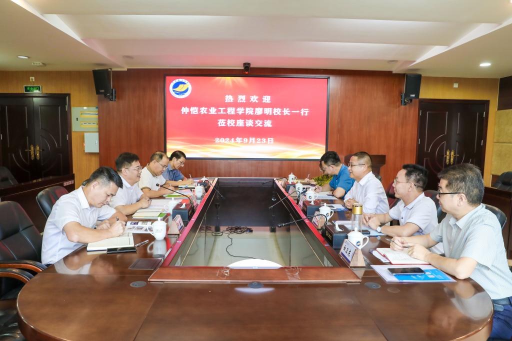9月23日,仲恺农业工程学院校长廖明、副校长田允波率党政办公室主任陈志强、研究生部部长白卫东等来我校调研。学校党委书记杨洲、副校长周昌仕接待了廖明一行并出席调研座谈会。党政办主任尹喜、研究生院院长叶国栋等参加座谈。