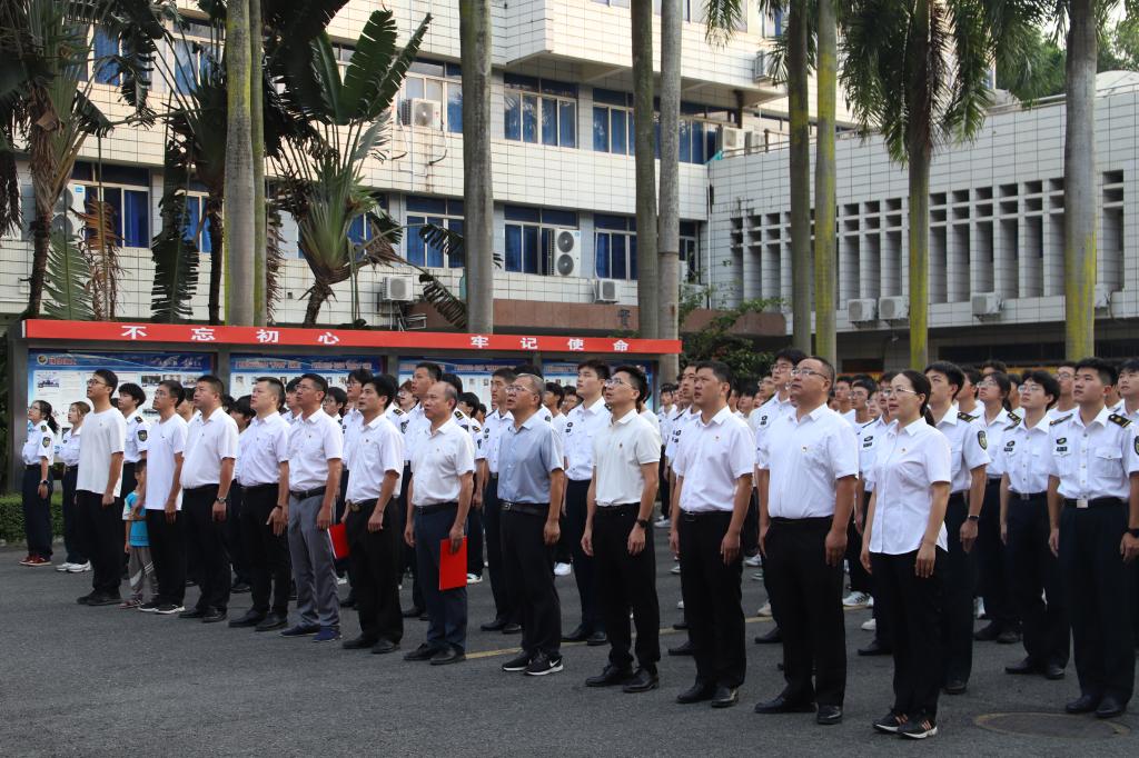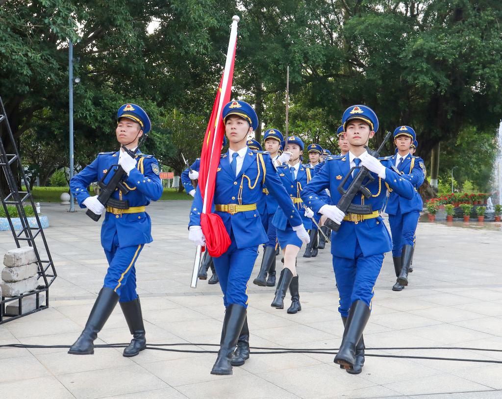 学校领导杨洲、谭平、谭北平、宁凌、邓逢光、周昌仕、林宇,各单位部门主要负责人及师生代表共2000多人现场参加活动,超过1800人次师生在线参加了升旗仪式。学校党委书记杨洲在湖光校区讲授“国旗下的思政课”,党委副书记谭平主持湖光校区活动。学校党委常委、副校长邓逢光,党委常委、副校长、阳江校区党委书记、管理办公室主任周昌仕分别在海滨校区、阳江校区升旗活动上讲话。