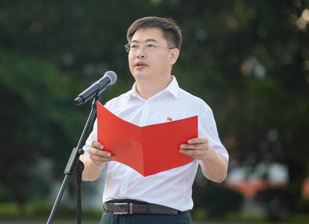 升旗活动上,学生代表深情朗诵献词《祖国你好!青春向党,扬帆起航》:“我们在新征程的扉页上,写下科技创新的交响,写下海洋强国的领唱,写下高质量发展的协奏曲,写下新时代奔腾不息的奋斗史,写下海大师生‘请党放心 强国有我’的青春篇章……”海大青年学子以锐意进取、担当有为的精神风貌,向祖国致以青春的礼赞、许下青春的誓言。
