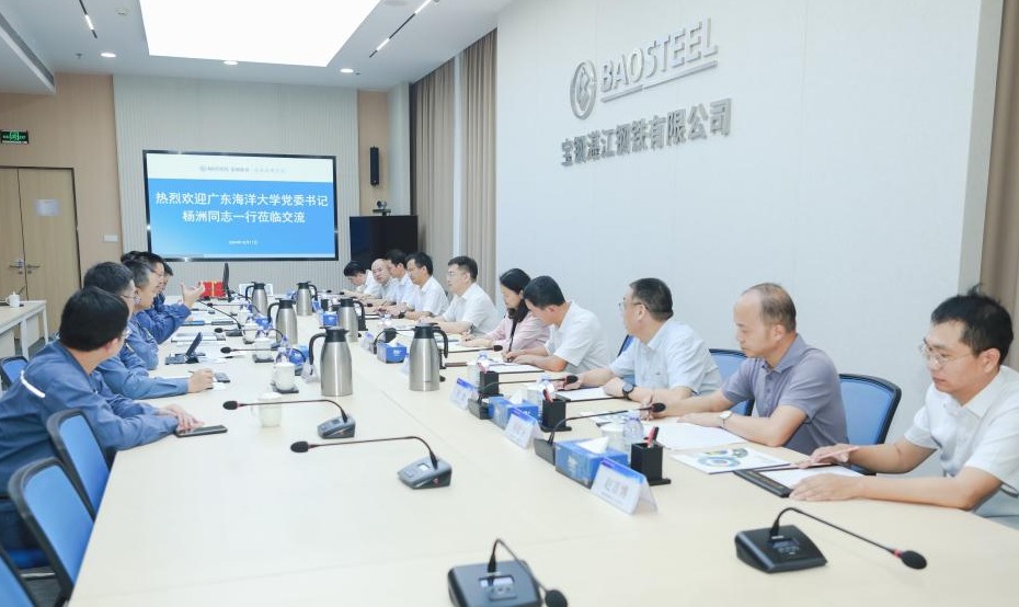 田国兵表示,湛江钢铁作为中国华南区域规模最大的碳钢板材制造基地,投运国内首套百万吨级氢基竖炉,有5000m³级特大型高炉3座,人均吨钢产量全国第一,承担着国家发展战略任务,其中广东海洋大学校友在湛江钢铁建设中贡献着重要力量,希望双方围绕产业发展需求进一步拓展合作新领域。