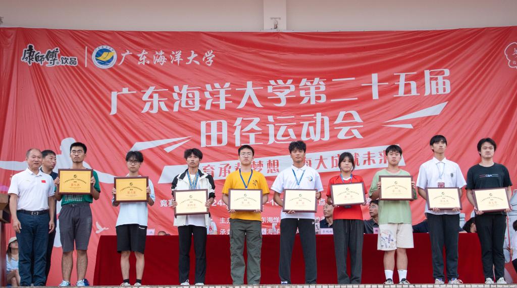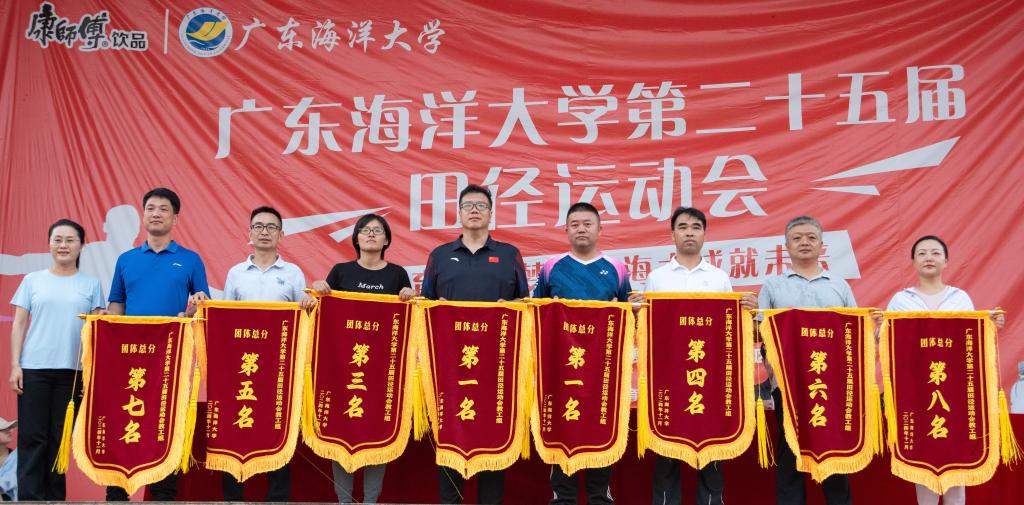 闭幕式上,与会领导分别为获奖代表团队颁奖。体育与休闲学院、管理学院、经济学院、阳江校区、数学与计算机学院、电子与信息工程学院、滨海农业学院、水产学院、船舶与海运学院分别荣获学生组团体总分前八名;体育与休闲学院、后勤工会、机关工会、水产学院、中歌艺术学院、滨海农业学院、电子与信息工程学院、管理学院分别荣获教工组团体总分前八名;船舶与海运学院、化学与环境学院学生代表队荣获“体育道德风尚奖”;经济学院、管理学院学生代表队荣获“优秀组织奖”。