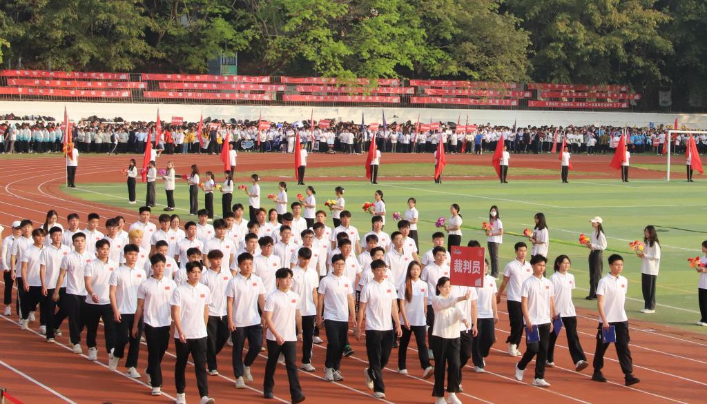 11月15日上午,运动会举行开幕式。学校党委书记杨洲,党委副书记谭平,党委常委、副校长邓逢光、周昌仕,党委常委、宣传统战部部长林宇,以及各相关职能部门和学院领导出席开幕式。杨洲宣布运动会开幕,邓逢光主持开幕式。