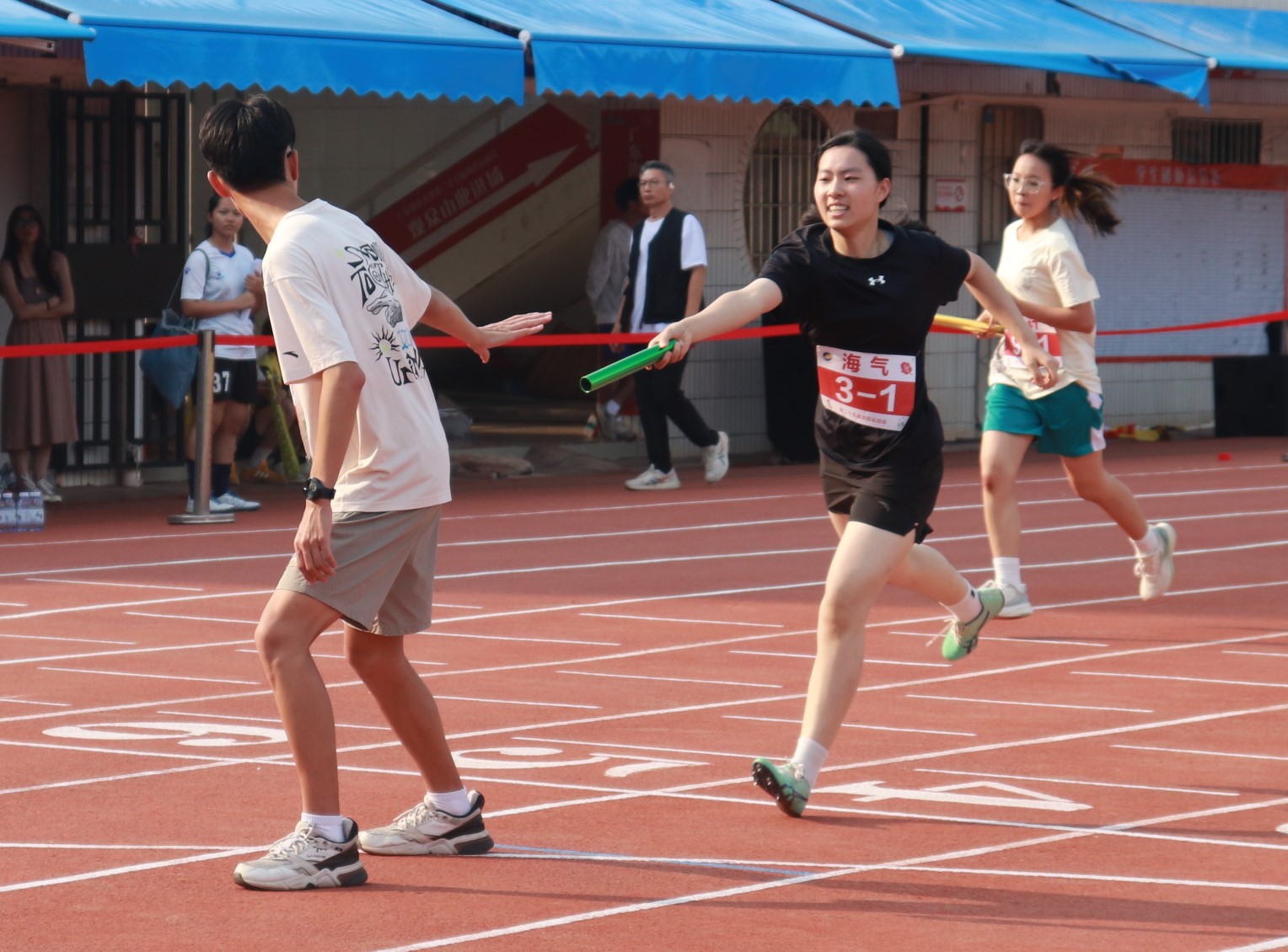 此次运动会上,社体1242黎荣同学以2分零4秒91打破1999年第一届田径运动会男子800米纪录,同时打破2023年广东省大学生田径锦标赛1500米纪录。对田径赛事充满兴趣和信心的黎荣表示:“校运会可以促进学生的体质健康,激发大家参与体育活动的热情。纪录是留着被大家打破的,希望每位运动员都能再创佳绩。”