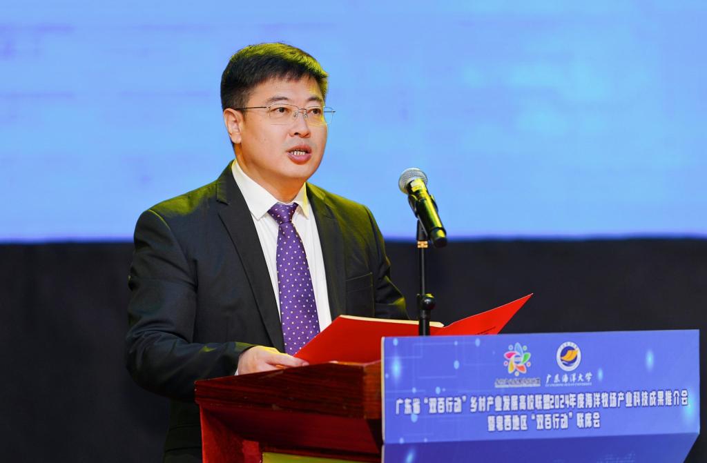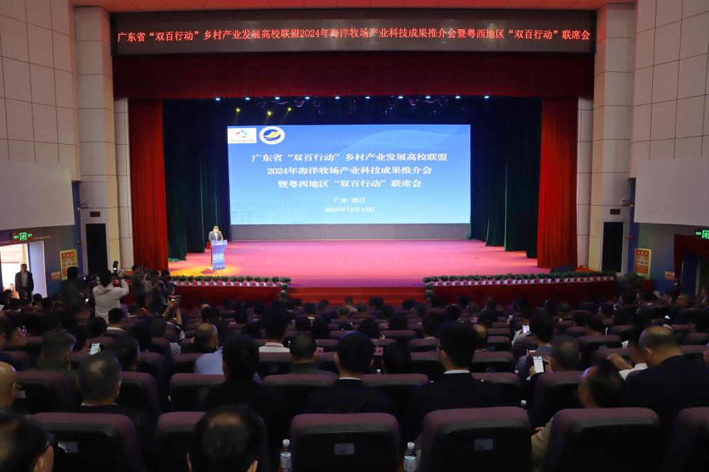 12月10日,广东省“双百行动”乡村产业发展高校联盟2024年海洋牧场产业科技成果推介会暨粤西地区“双百行动”联席会在我校举办。省科技厅、湛江市相关部门领导,省乡村产业发展高校联盟成员单位、各县区“双百行动”专班负责人、企业代表参加会议,共同推动优秀科研成果就地转化,汇聚科技力量助推“百千万工程”,为乡村产业高质量发展贡献智慧和力量。