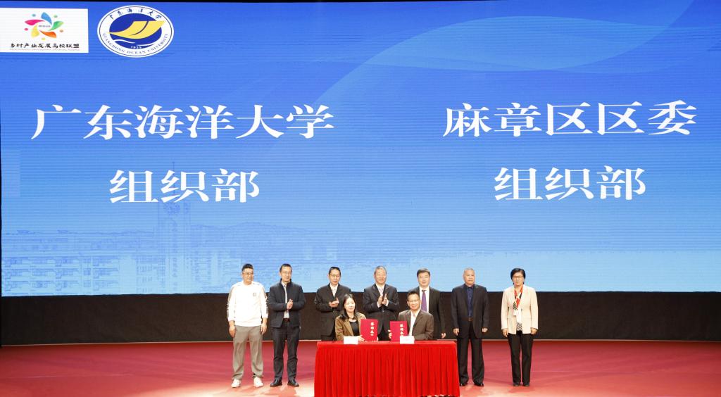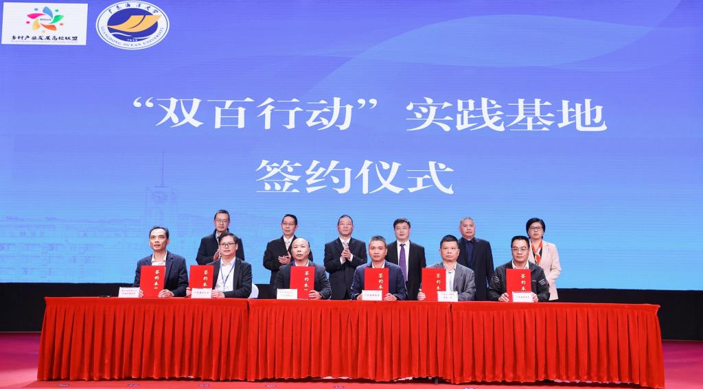 杨洲表示,广东海洋大学聚焦国家和广东省、湛江市发展需求,充分发挥农学、水产、食品等学科优势、科技创新优势和人才优势,广泛深入开展校地、校企合作。“双百行动”启动以来,学校成立工作领导小组,制定专项工作方案,按照“县域所需、海大所能”的原则,坚持“六有”,即党建引领有组织构建服务体系、需求导向有主题对接三盟一队、校地联动有团队执行具体任务、揭榜挂帅有项目引导技术落地、技术创新有成果提升发展质量、落地见效有贡献促进地方发展,以“三盟一队”(省“双百行动”乡村产业发展高校联盟、乡村公共服务高校联盟、乡村建设规划高校联盟和广东青年大学生“百千万工程”突击队)为抓手,和广东石油化工学院、广东生态工程职业学院、湛江幼儿师范专科学校组团分别与徐闻县、雷州市、麻章区结对,采用党建共建、结对帮扶模式,重点在种业振兴、海洋牧场、特色农业、人才培养、美丽圩镇和文旅开发等方面助力广东县域经济高质量发展,作出了海大贡献。