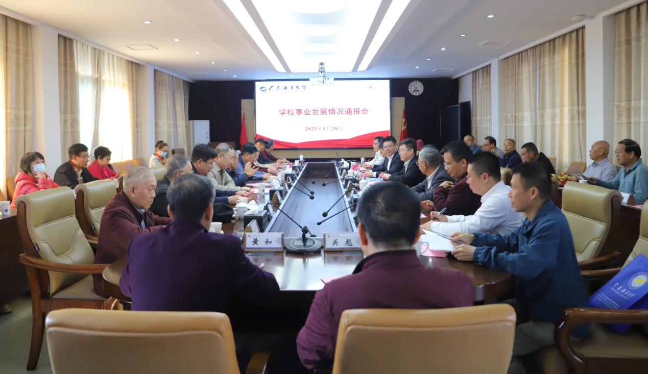 1月20日上午,我校在霞山校区第一会议室召开2024年学校事业发展情况通报会。学校党委书记杨洲,党委副书记谭平,党委常委、副校长谭北平,党委常委、宣传统战部部长林宇,退休校领导胡日章、容景春、彭权群、陈泽球、刘东超,学校相关职能部门领导,离退休老干部老领导、退休教师代表,离退休党委委员和各党支部书记欢聚一堂,共话学校发展。谭北平主持会议。