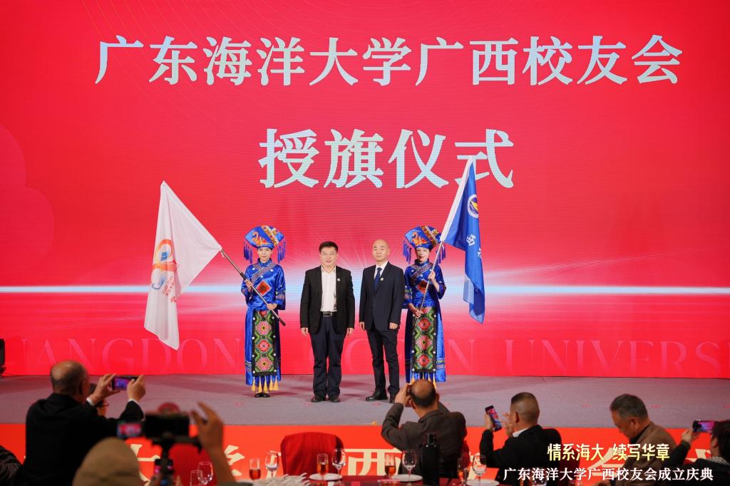会上,杨洲向广西校友分会授予会旗,并传递学校90周年校庆旗帜,谭平宣读了关于同意成立广西校友分会的批复。会议选举产生了广西校友分会第一届理事会,并举行聘书颁发及表彰仪式。