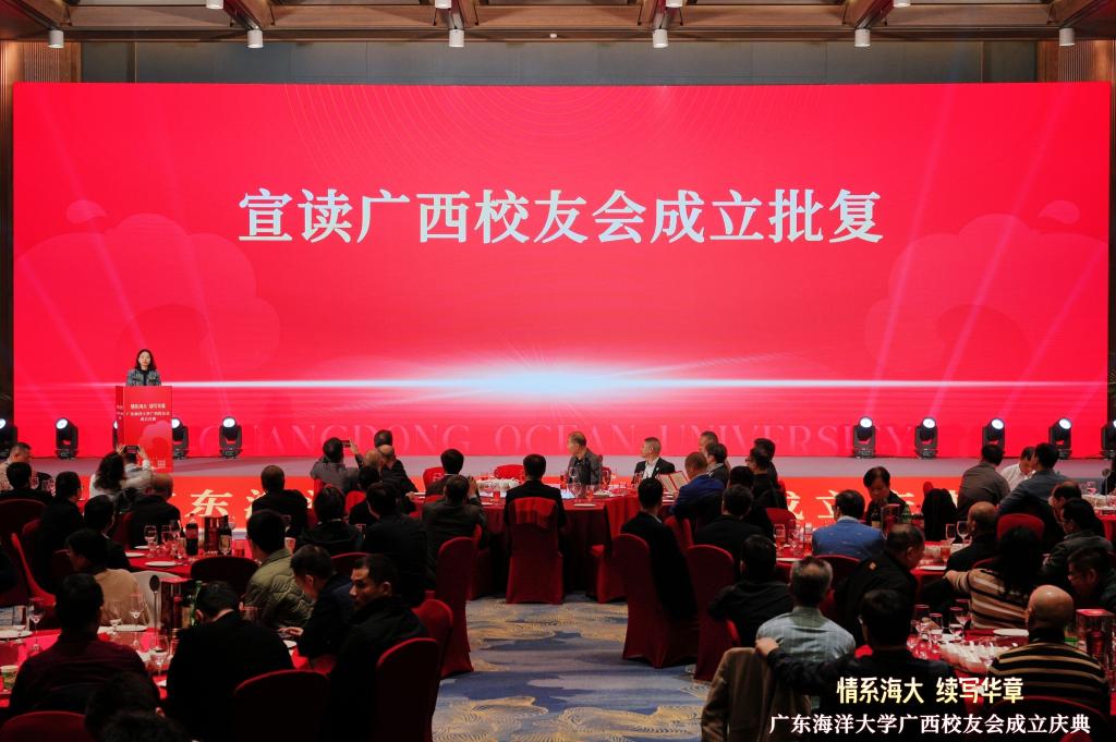 1月18日下午,广东海洋大学校友会广西校友分会成立大会在南宁举行。学校党委书记杨洲出席大会并致辞。学校党委副书记谭平,校庆筹备委员会副主任、原副校长刘东超,教师代表、各地校友分会代表及广西各地校友代表共200余人参加成立大会。