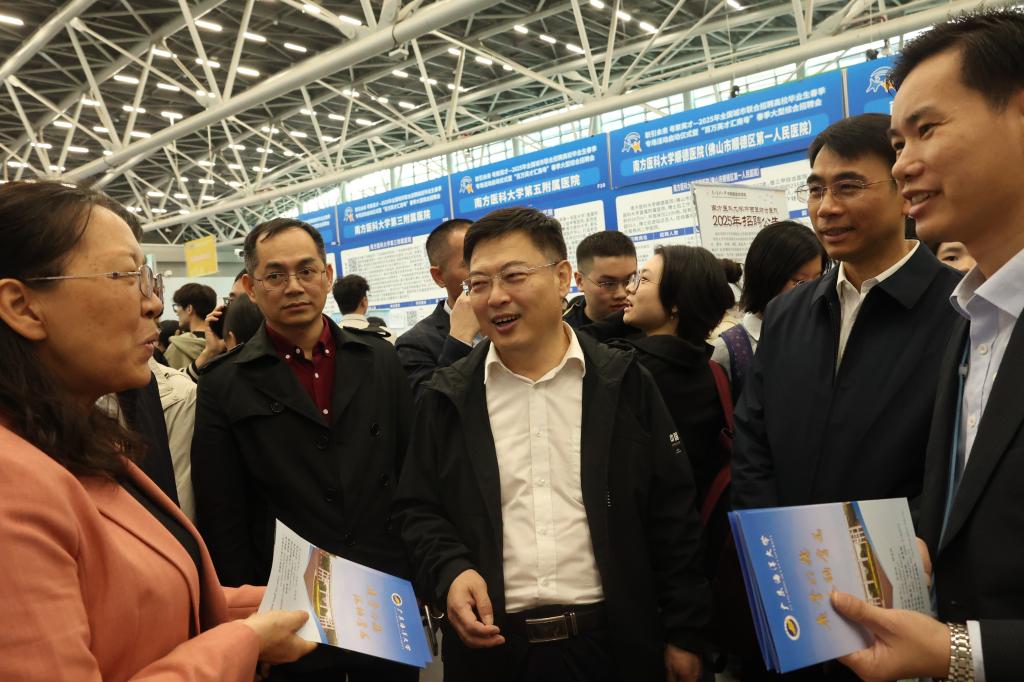 3月16日,2025年全国城市联合招聘高校毕业生春季专场活动启动仪式暨“百万英才汇南粤”春季大型综合招聘会在广州举行,此次招聘会由人力资源和社会保障部、教育部和广东省委、省政府联合主办。学校党委书记杨洲、副书记谭平带领学校人力资源部、学生工作部(招生与就业指导中心)和部分分管学生工作的学院负责人参加招聘会。我校约1000名2025届应届毕业生参加了此次招聘会。