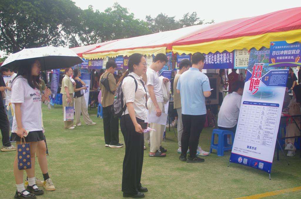 5月25日,由广东海洋大学联合深圳市宝安区人力资源局、江门市人力资源和社会保障局、江门市新会区人力资源和社会保障局、湛江市霞山区人力资源和社会保障局共同主办的2025届毕业生“百日冲刺促就业”校园招聘活动在学校湖光校区东区运动场举行。