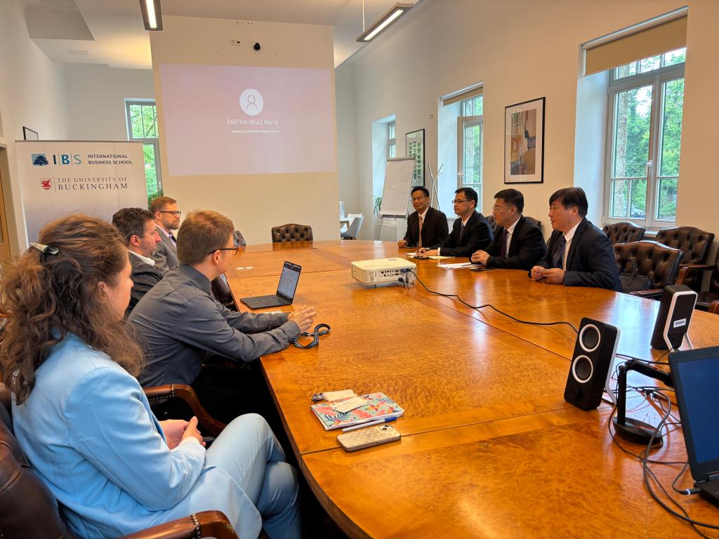在访问匈牙利布达佩斯IBS国际商学院时,杨洲一行与该校总裁László Láng Jr.和校长Márton Rácz进行了座谈交流。双方就两校管理学科相关专业在本科、硕士、博士各层次人才联合培养、专业教师互访及教学与科研合作等方面进行了细致沟通与商讨,并达成共识。