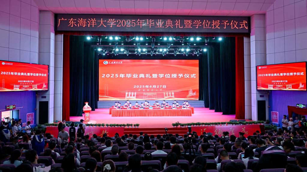碧海扬帆见证青春远航。6月27日,学校2025年毕业典礼暨学位授予仪式在湖光校区实验剧场举行,近万名海大学子满载知识与理想,开启人生的崭新航程。学校领导杨洲、谭平、谭北平、宁凌、邓逢光、鲁义善、林宇出席典礼,相关职能部门负责人、各学院领导、教师代表,2025届毕业生代表、家长代表等参加现场典礼。典礼由学校党委常委、副校长宁凌主持。