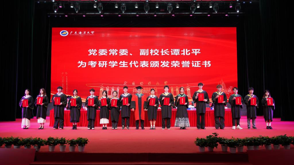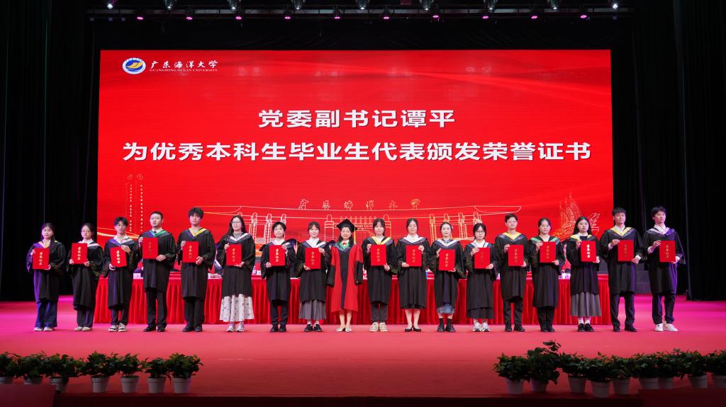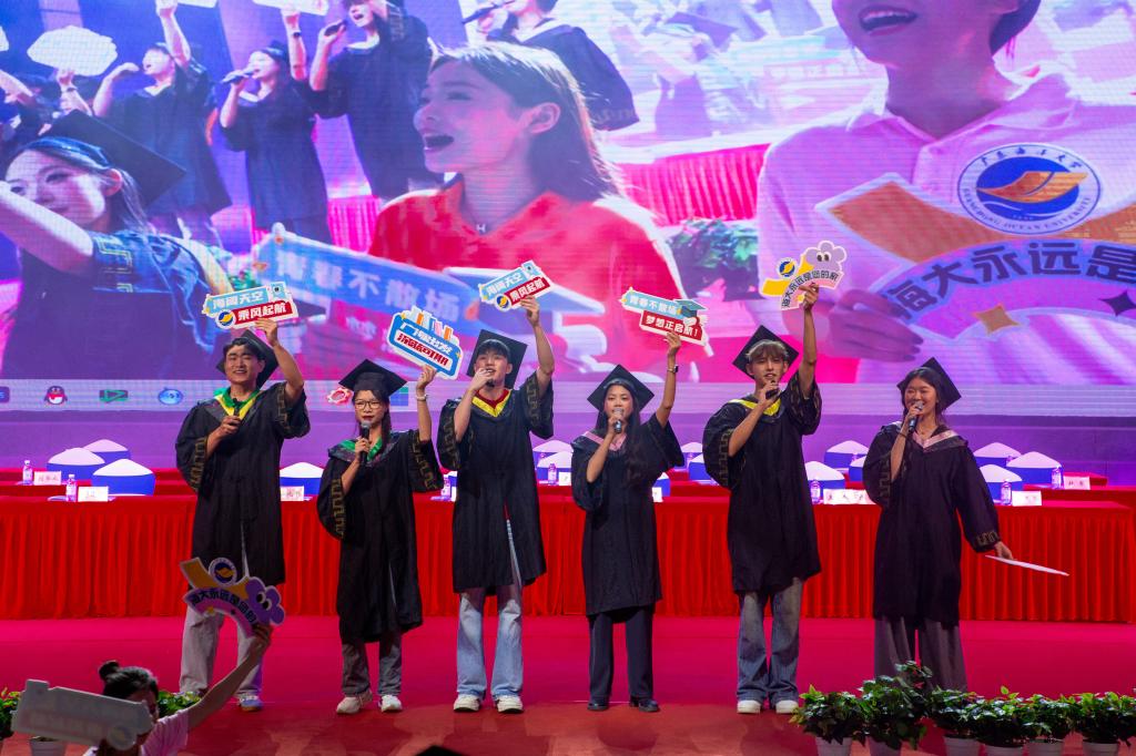 本科毕业生代表、管理学院财务管理专业谭灿同学深情祝福母校,表示将怀揣热爱、不忘初心,做海大发展的共进者,做海大跃进的同路人,以海大精神为帆,以青春梦想为桨,勇敢驶向更辽阔的天地。