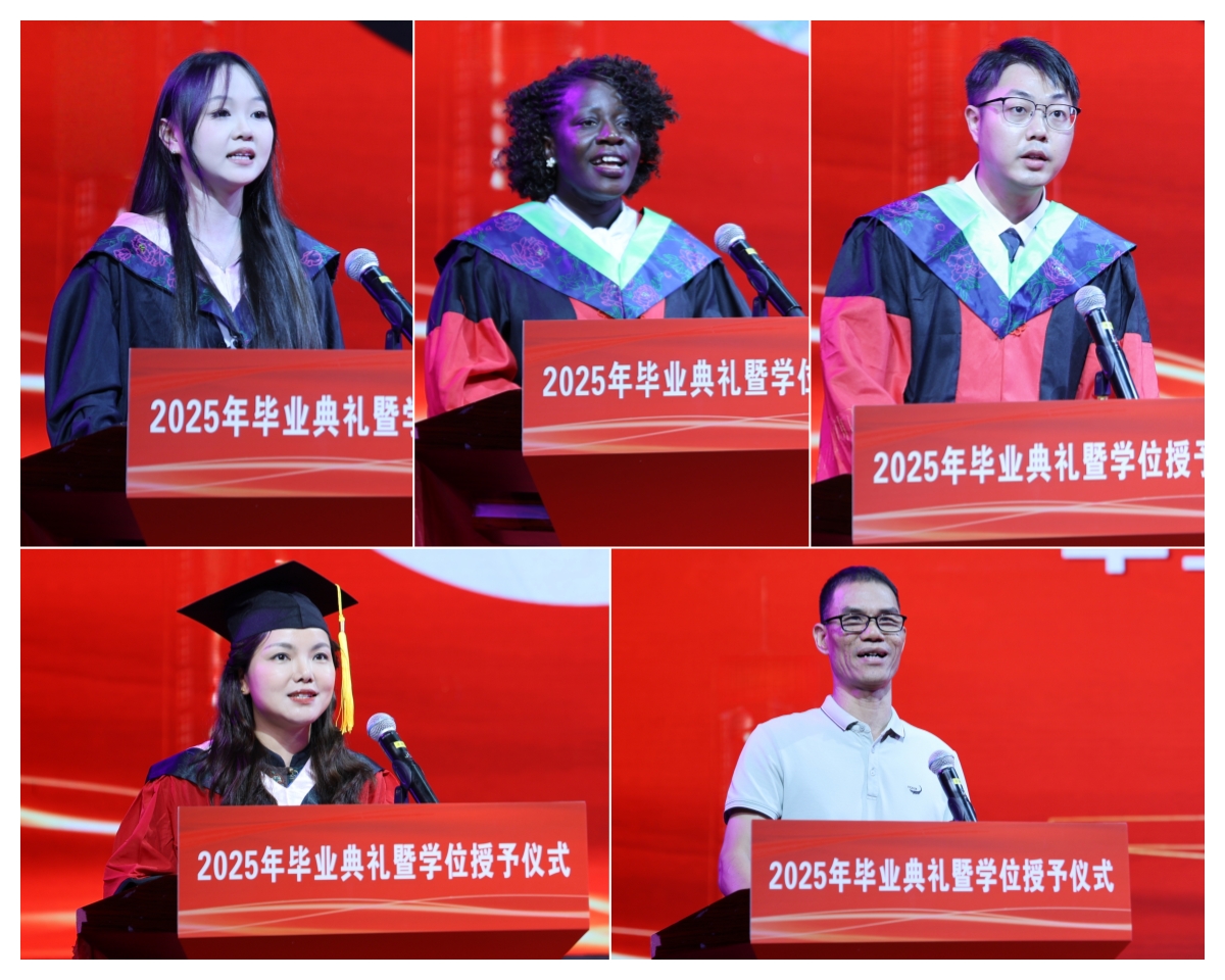 留学生毕业生代表、尤娜同学感恩师长、同窗、家人的陪伴和支持,尤其向导师表达深切谢意,强调博士荣誉是团队协作的结晶,学术情谊将滋养未来人生。表示将怀揣求知初心,以所学回馈社会,在新征程中永葆热忱、善意与胸怀。