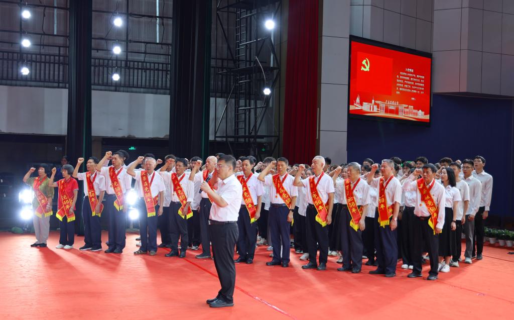 宣誓环节,在杨洲领誓下,新党员入党宣誓、老党员重温入党誓词,以铿锵有力的誓言,宣示初心使命,表示将始终坚定理想信念,筑牢信仰根基,把稳思想之舵,坚定不移听党话、跟党走,用实际行动践行党旗下的誓言。