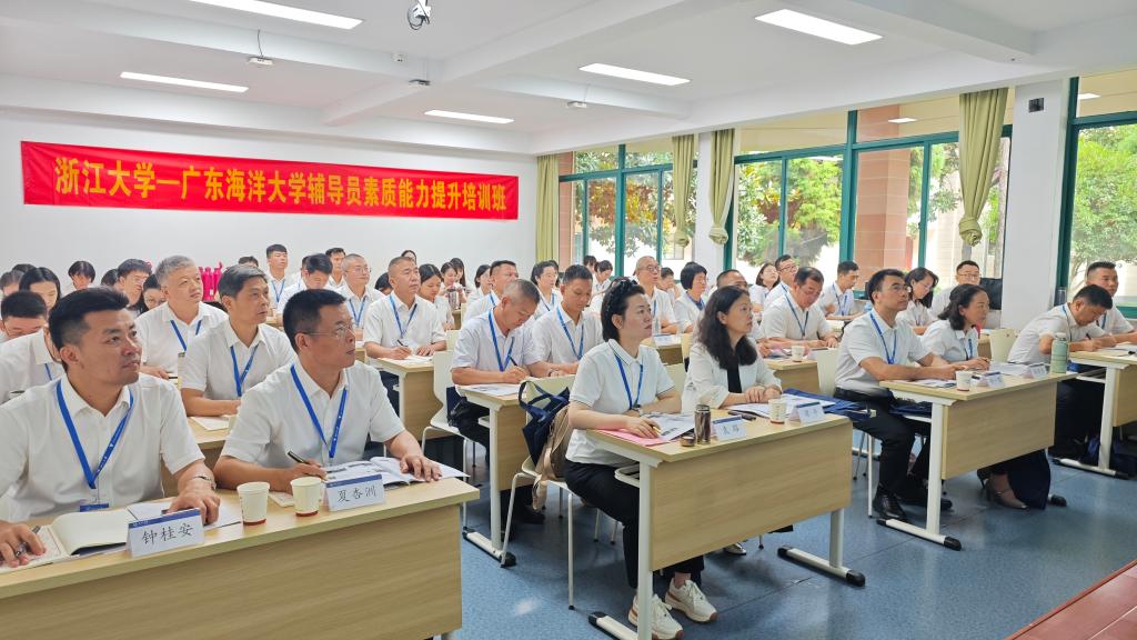 开班仪式上,谭平作动员讲话,她代表学校对承办此次培训的浙江大学文学院表示衷心感谢,希望全体学员要以习近平新时代中国特色社会主义思想为根本遵循,把握新时代背景下辅导员工作面临的机遇和挑战,通过此次培训,能够在思想上有收获、素质上有提高、作风上有改进、能力上有增强,并向大家提出几点要求和希望:一要锤炼学工内功,锻造思政铁军。实现学校高质量发展,离不开学工队伍的努力。学工队伍要通过深入学习和实践锻炼,全面提升自身的思想政治素养与综合能力,把自身打造成一支坚不可摧、充满战斗力的思政铁军,以更好地服务学校的整体发展和学生的全面成长。二要着力深学细悟,提升素质能力。辅导员工作是一项专业性很强的职业,需要系统化的知识体系和实战能力支撑,希望大家在培训学习中,不断深化对辅导员九项职责的认识,切实提升履职尽责能力,做“经师”更做“人师”,推动我校学生工作高质量发展。三要强化学以致用,书写育人新篇。学工队伍要增强学习主动性、紧迫感。自觉把学习作为一种政治责任、一种人生态度,用“脑袋有料”支撑“心里有谱”。培训期间,要树立海大良好的风貌,严格遵守管理规定,把学习成果落实到干好本职工作、推动事业发展上,为学校事业的高质量发展贡献力量。