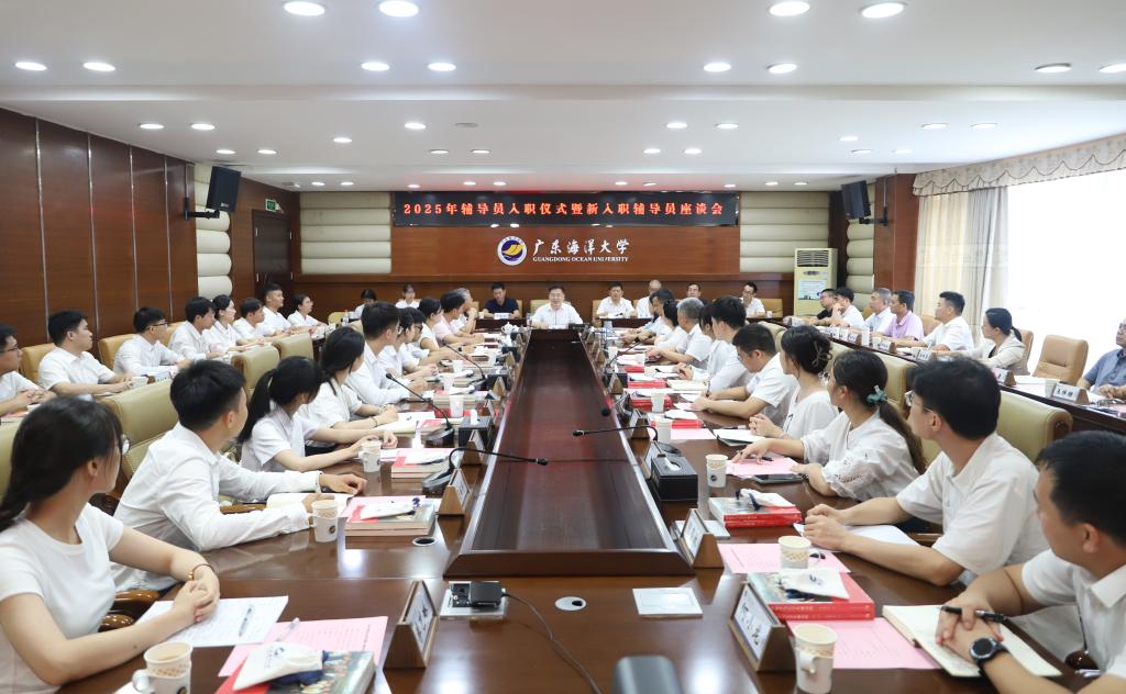 9月4日下午,我校在湖光校区行政楼五楼会议室举行2025年辅导员入职仪式暨新入职辅导员座谈会。学校党委书记杨洲出席并讲话,党委副书记谭平主持会议。组织部、宣传统战部、学生工作部、保卫部、人力资源部、校团委等部门负责人,相关学院分管学生工作领导,以及湛江校区全体新入职辅导员现场参会。阳江校区相关领导、老师及新入职辅导员通过视频连线同步参加。