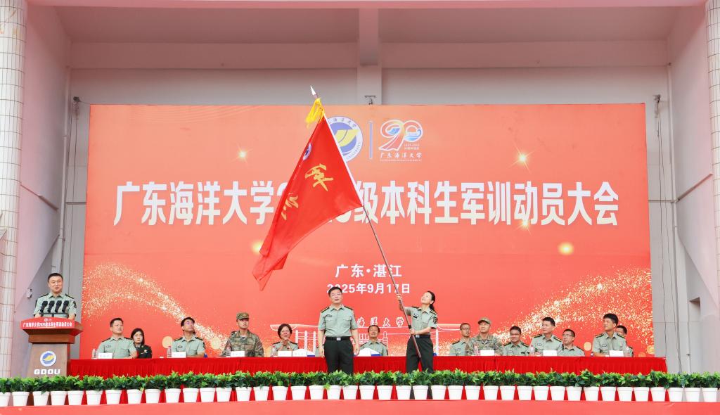9月17日上午,学校在湖光校区东区运动场、阳江校区海阳馆举行2025级新生军训动员大会。学校党委书记杨洲,党委常委、副校长周昌仕分别作开训动员讲话。学校党委副书记谭平宣读军训旅机构设置情况及各营营长、教导员名单。学校党委常委、副校长、军训旅旅长鲁义善主持湖光校区大会,阳江校区党委副书记、军训团团长丁永成主持阳江校区大会,阳江校区党委副书记麦冬宁宣读各军训营营长、教导员名单。军训旅副政委、副旅长,各学院分管学生工作领导,全体教官,负责带训的辅导员和班主任,湖光校区、阳江校区2025级本科生现场参会。海滨校区2025级本科生通过线上直播形式参加大会。