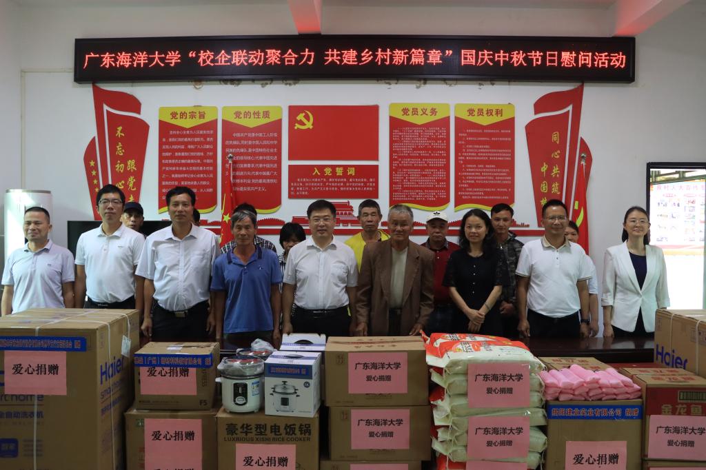 9月26日,在国庆中秋双节来临之际,学校党委书记杨洲、党委副书记谭平带队到遂溪县河头镇调研,并看望慰问双村村困难群众、老党员、当地在校学生和我校驻河头镇帮镇扶村干部。