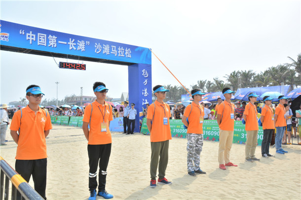 5月1日,“中国第一长滩”湛江首届沙滩马拉松赛暨沙滩旅游文化节在东海岛举行。根据赛事组委会工作安排和学校领导指示,校团委、青年志愿者协会选拔了90名志愿者,开展了竞赛协助、后勤保障、交通引导、维护秩序等志愿服务。