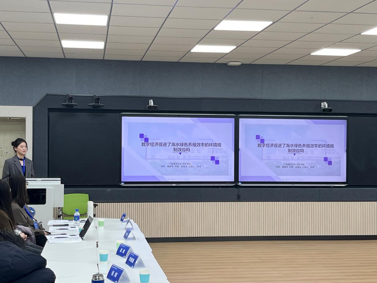 经济学院杨丽华教授与研究生杨振波同学合作的论文《数字经济促进了海水绿色养殖效率的环境规制效应吗》提交大会并成功入选,在平行分论坛上进行学术报告,研究生胡佳代表团队作论文汇报。论文选取2010年至2019年间中国9个沿海地区省级面板数据为样本,运用SBM模型进行特征事实分析,并基于固定效应模型深入剖析了数字经济技术对海水绿色养殖效率的影响效应及其调节作用。此次报告得到了与会专家的肯定与专业建议,也展示了学院研究生的学术风采。