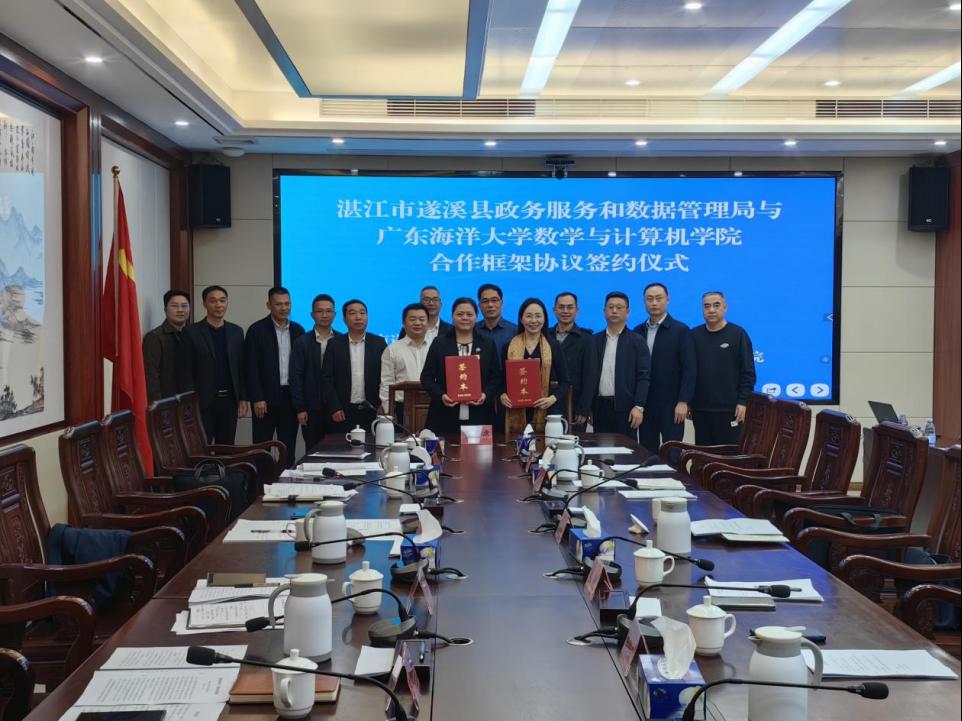 会上,遂溪县政府服务和数据管理局与数学与计算机学院签订了合作框架协议。这一协议的签署,标志着双方将在产学研深度融合的道路上携手共进,为遂溪县的数字化发展筑牢根基。我校的科研力量将精准对接地方需求,助力遂溪在科技创新、人才培养、产业升级等多方面实现突破。