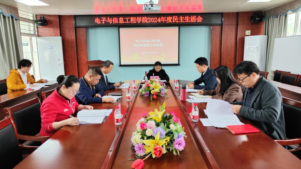 1月7日下午,电子与信息工程学院党委在图海楼604会议室召开2024年度民主生活会,学院党委书记袁仁广,党委副书记、院长付东洋,党委副书记王梓珊,副院长王骥、杨玉强出席会议。学校党委副书记谭平列席会议并作点评讲话。会议由袁仁广主持。