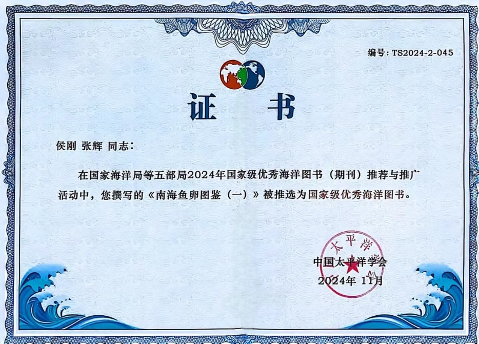 近日,在国家海洋局、教育部、文旅部、国家广播电视总局、国家文物局联合开展的2024年国家级优秀海洋图书(期刊)推荐与推广活动中,水产学院侯刚副教授等著作《南海鱼卵图鉴(一)》被推选为“国家级优秀海洋图书”。这是侯刚副教授继2022年《南海仔稚鱼图鉴(一)》被推选为“国家级优秀海洋图书”后,其著作再次获奖。