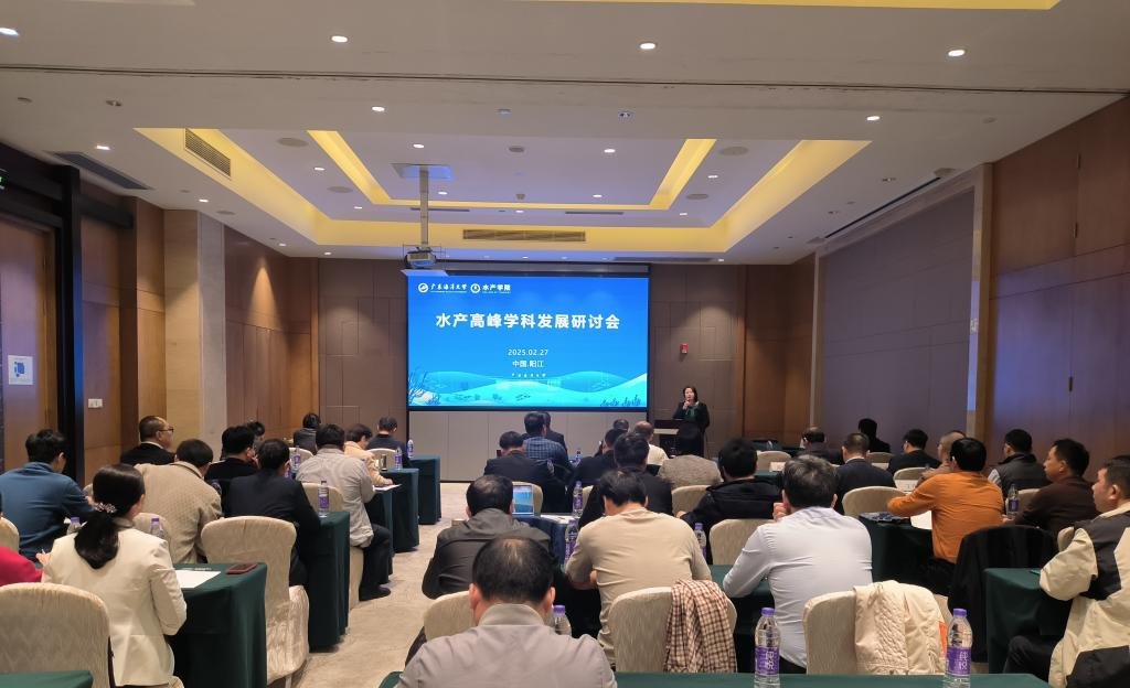 为进一步做好水产高峰学科建设工作,水产学院于2月26日-27日在阳江中心华邑酒店举办了水产高峰学科发展研讨会,学校党委常委、副校长谭北平、宁凌、鲁义善,学校相关职能部门负责人、学院领导班子成员、科研团队负责人及学术骨干等50多人参会,研讨会由学院院长李广丽主持。