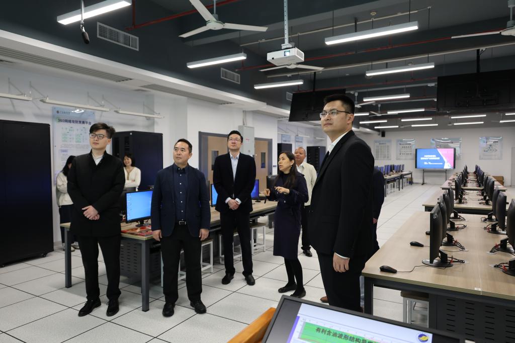 在计算机科学与工程学院调研期间,学院党总支书记刘利群向调研组详细汇报了学院科研团队建设情况。其中,宋文广教授团队在油气生产测井动态监测解释软件领域深耕二十余年,成功研发15套石油行业专业软件,累计创造社会经济效益数亿元;林耀庭博士团队在钻前油气预测领域取得突破性进展,相关专利成果已于2024年实现转化;邓超博士团队研发的“五金剪刀产业区块链溯源服务平台”创新运用AI及大数据技术,实现产品全流程可追溯,其“海上风电无人机智能巡检系统”实现了自动巡航、缺陷识别等智能化功能,有效降低了运维成本,提升了工作效率。调研组认真听取汇报,对学院科研团队建设成效给予高度评价。