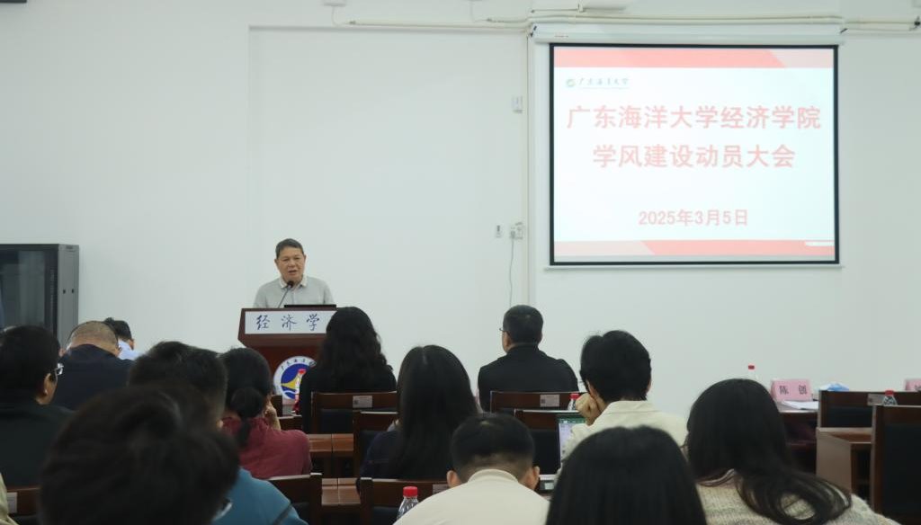 为贯彻落实《广东海洋大学学风建设三年行动方案(2025-2027年)》文件精神,积极响应学校党委部署安排,扎实推进学院优良学风建设,3月5日,经济学院在文科楼3号楼508室召开学风建设动员大会,经济学院全体教职工参加会议,会议由学院党委书记陈创主持。