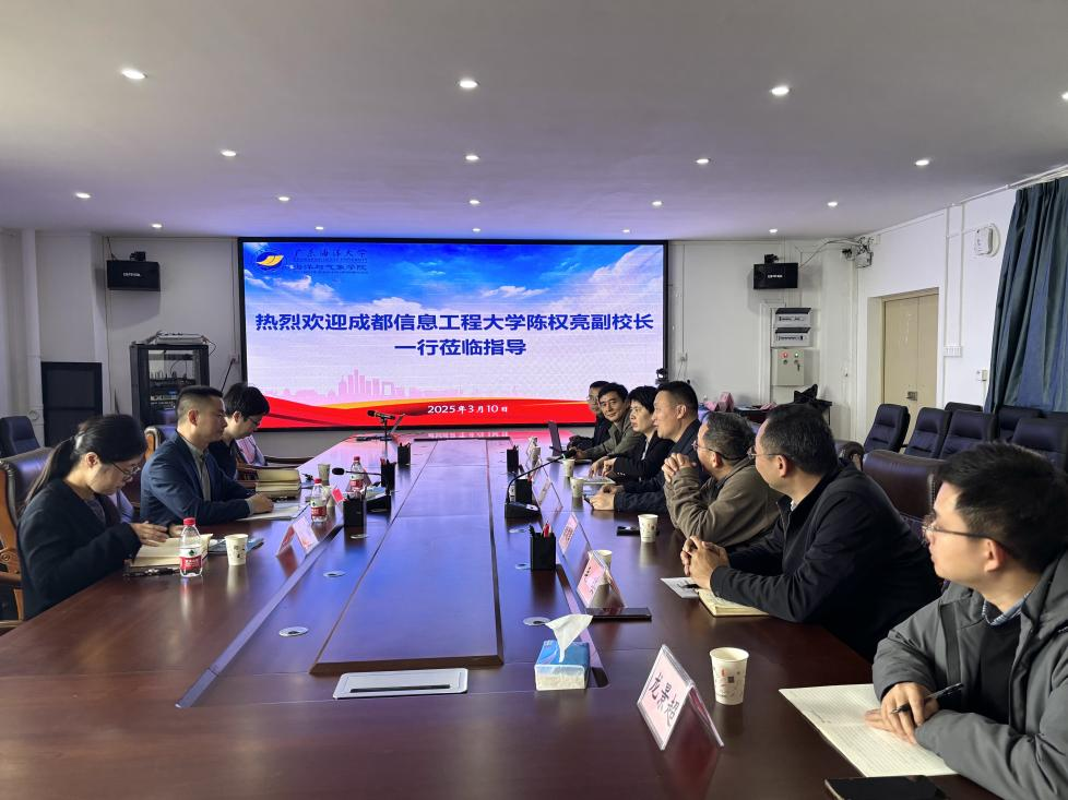 3月10日上午,成都信息工程大学副校长陈权亮一行到海洋与气象学院进行学术交流与合作探讨。我校副校长鲁义善,海洋与气象学院党委书记毛琪、院长谢玲玲、副院长薛宇峰、徐建军教授等教师代表出席会议。