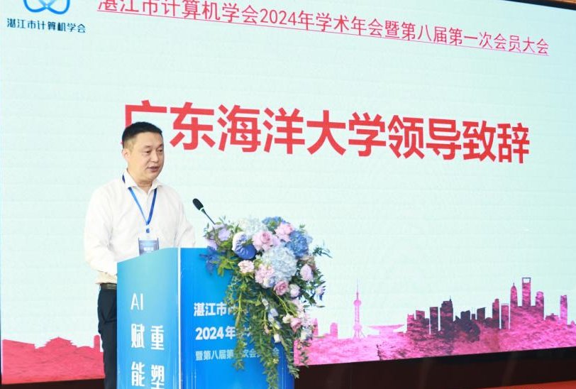 在大会开幕式上,我校副校长鲁义善发表致辞,强调人工智能技术对推动区域经济与教育科研深度融合的重要性,并指出我校将持续深化校企合作,为湛江乃至粤港澳大湾区的数字化发展注入新动能。