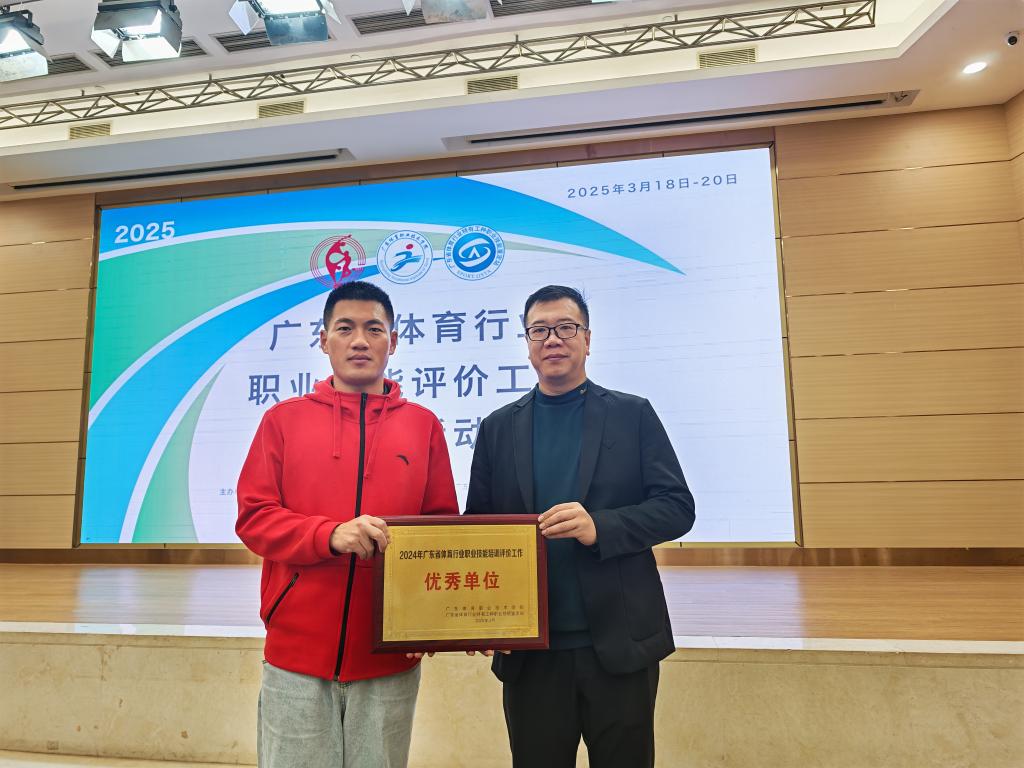 我校凭借2024年度在体育行业职业技能培训评价工作中扎实的开展情况和卓越的工作质量,从众多单位中脱颖而出,荣膺2024年度优秀单位称号(全省仅10个名额)。这是我校自2023年度以来,连续第二年获此殊荣。谭斌作为优秀单位代表在大会上分享了我校的优秀经验,全面展示了我校在体育行业职业技能培训领域的突出成果。这一荣誉不仅是广东省体育局对我校体育工作的高度认可,更充分体现了学校对学生综合发展的高度重视。