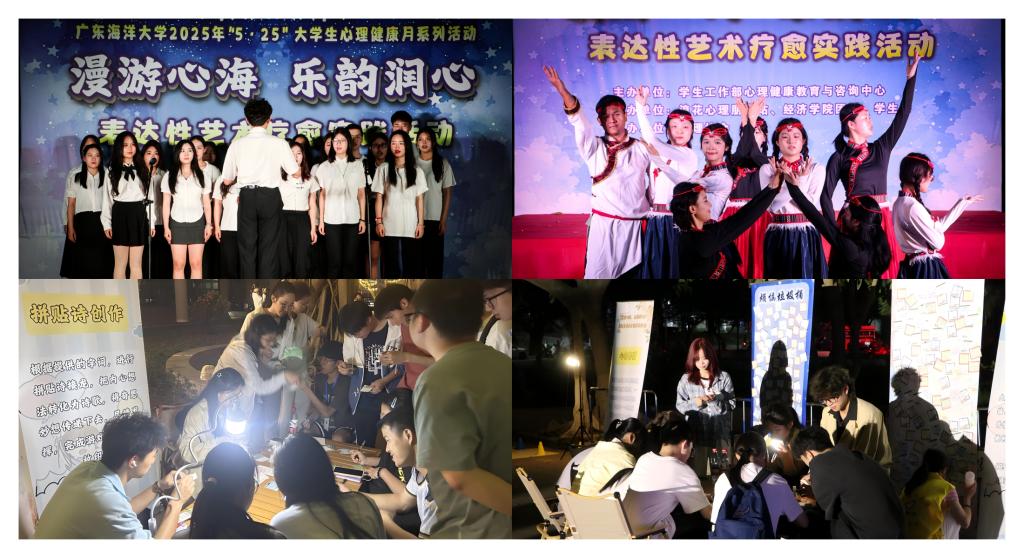 为探索推进心理健康教育的新模式,3月26日晚上,学校在湖光校区第四食堂旁举办“漫游心海,乐韵润心”主题心理健康实践活动。活动作为我校“5·25”大学生心理健康月系列活动的一部分,由学生工作部心理健康教育与咨询中心主办,经济学院团委、学生会及浪花心理站承办,吸引了近千名师生参与。