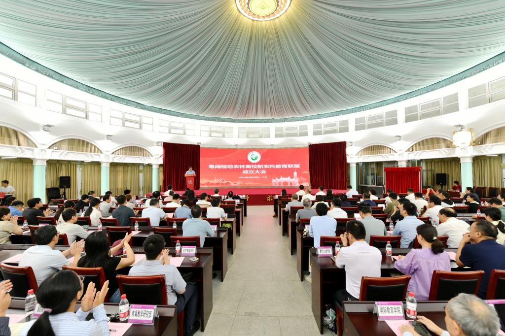 4月25日,粤闽桂琼农林高校新农科教育联盟成立大会在华南农业大学召开。联盟由华南农业大学牵头筹建,福建农林大学、广西大学、海南大学、中山大学、广东海洋大学和仲恺农业工程学院联合发起。广东省教育厅高等教育处处长姜琳以及21所农林高等院校、6家科研院所及3家行业龙头企业代表参加成立大会,我校教务部部长严谨、滨海农业学院副院长刘文超代表学校参加会议。