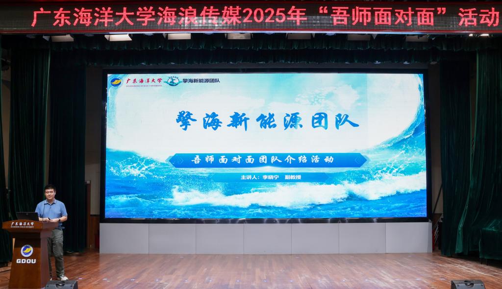 4月28日,由党委宣传统战部主办,海浪传媒承办的“吾师面对面”活动在湖光校区广学楼多功能厅顺利举办。本次活动主题为“师言水韵水泽八方”,邀请了我校擎海新能源研究团队指导老师、海洋工程与能源学院李晓宁副教授及其团队成员作交流分享。宣传统战部副部长陈淦添,宣传统战部、学生工作部老师以及来自全校300多名学生参加活动。