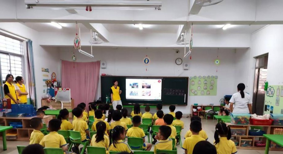 4月28日下午,由经济学院各学生党支部党员、学生骨干组成的志愿者走进湛江市湖光镇湖光中心幼儿园开展“红心向阳,童梦启航”主题志愿服务活动,以寓教于乐的形式将红色文化浸润童心,在小朋友们心中植下一颗爱党爱国的种子。