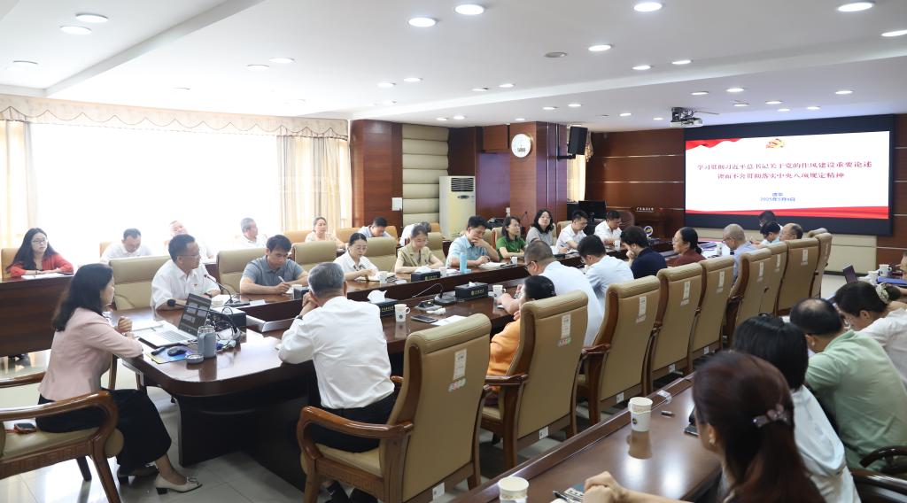 为深入贯彻中央八项规定精神,持续推进学校作风建设,5月9日上午,学校党委副书记谭平在湖光校区行政楼五楼会议室讲授专题党课。党课主题为《学习贯彻习近平总书记关于加强党的作风建设的重要论述 锲而不舍贯彻落实中央八项规定精神》,学校党委组织部、宣传统战部、学生工作部(招生与就业指导中心)、教育工会、校团委科级及以上干部,电子与信息工程学院、文学与新闻传播学院、法政学院领导班子成员和党政办公室主任等参加了本次党课学习。