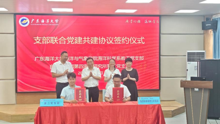 随后,学院海洋科学系教工党支部与研究所第三党支部代表在海科楼107会议室签署共建协议,标志着双方合作正式开启。该所所长丰爱平,我校组织部正处级组织员曾令梅,学院党委书记毛琪、院长谢玲玲共同见证这一重要时刻。