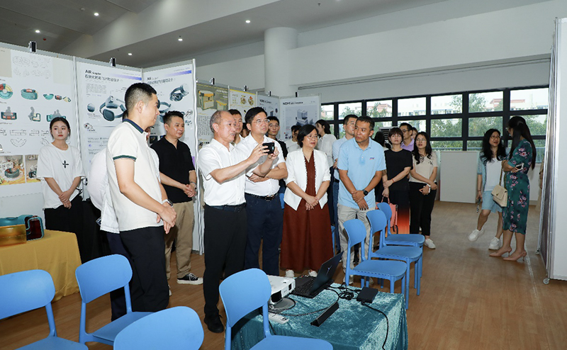 开幕式后,一行参观了毕业设计展。展览现场精彩纷呈,视觉传达设计专业巧妙融合海洋文化与现代设计语言,环境设计专业聚焦乡村振兴呈现美丽乡村建设方案,产品设计专业立足“中国智造”展示科技与人文的完美结合,美术学专业则通过画笔记录南路革命历史。